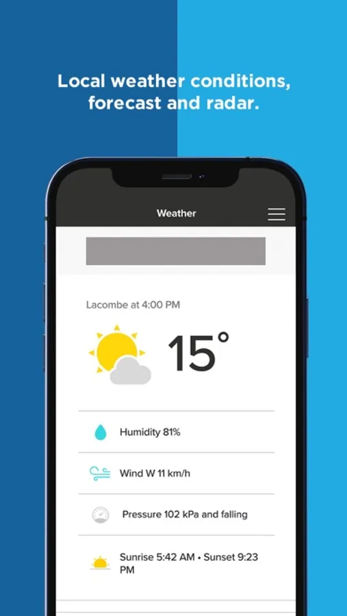 - Live local weather conditions, including hourly and 7-day forecasts and radar maps from Environment Canada