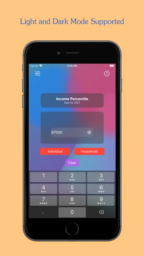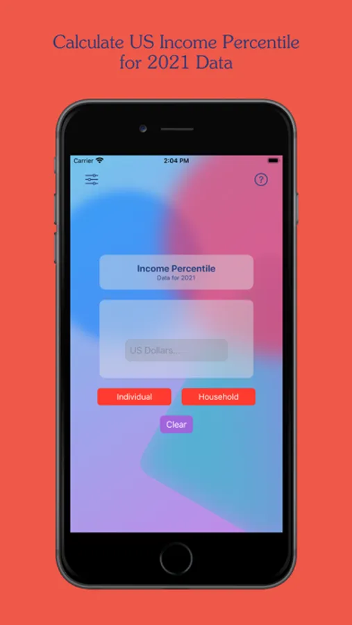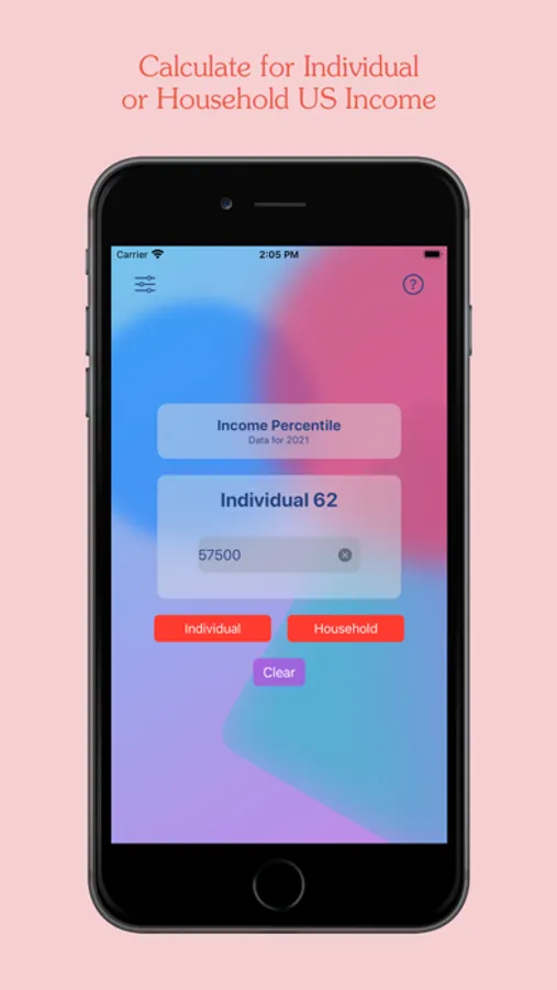 This app calculates the US individual income percentile for 2021 or the US household income percentile for 2021.