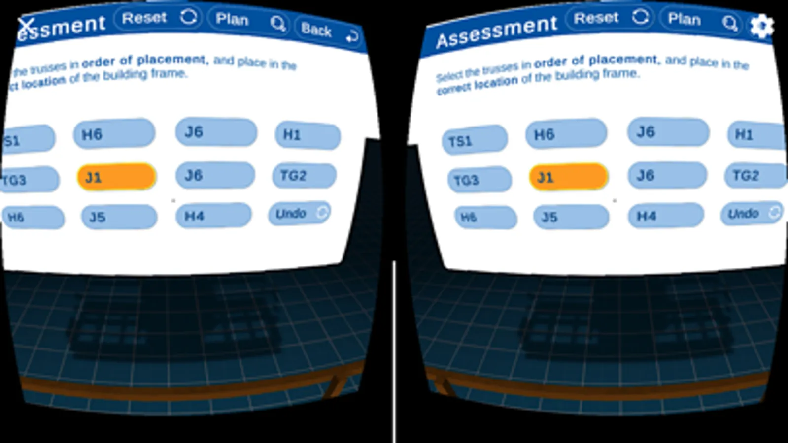 This is a VR application to help Construction workers and students understand the sequencing of assembling and constructing the components of a simple timber frames structures of a residential building in compliance with the Australian National Construction Code (NCC) requirements Australian Standards. The application includes two modes: Practice and assessment modes. The practice mode helps the user understand the process and the sequencing before trying the Assessment mode. A mobile VR headset or google cardboard is needed in this app.