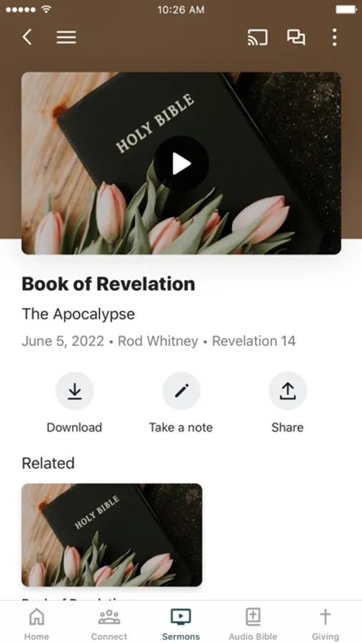 This app will help you stay connected with the day-to-day life of our church. With this app you can: watch or listen to past messages; stay up to date with push notifications; share your favorite messages via Twitter, Facebook, or email; and download messages for offline listening.