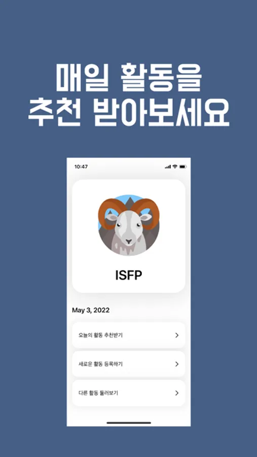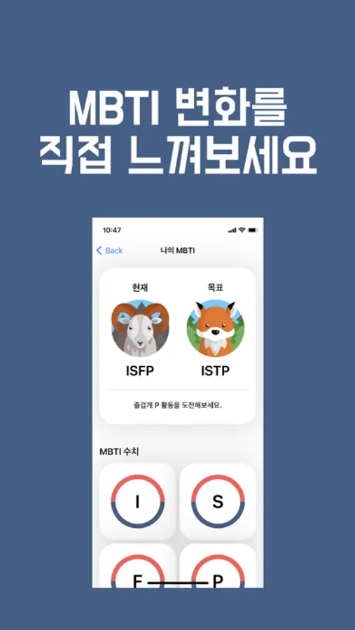 해당하는 MBTI 활동을 수행하면서 MBTI를 직접 관리해봐요