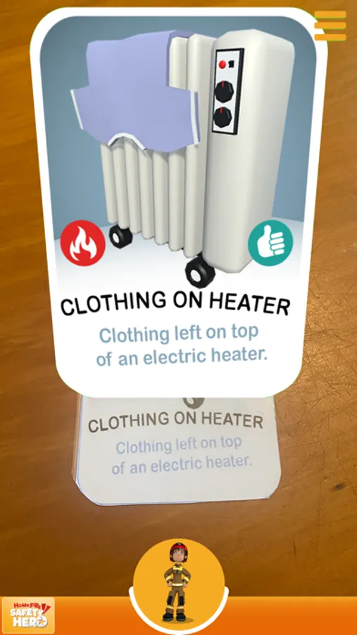 Play the augmented reality version of Home Fire Safety Hero and see if you have what it takes to make your home fire safe. There are 28 challenge cards for players to decide whether the scene is "Fire Safe" or a "Fire Hazard". Once you have completed the challenge reward yourself by taking a photo with an AR firefighter in your own home. Cards are available for free to download and print at home. Visit the Brigade Kids website to learn more about Fire Safety education and become a HOME FIRE SAFETY HERO!