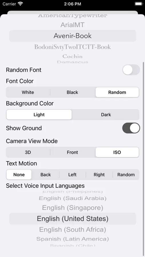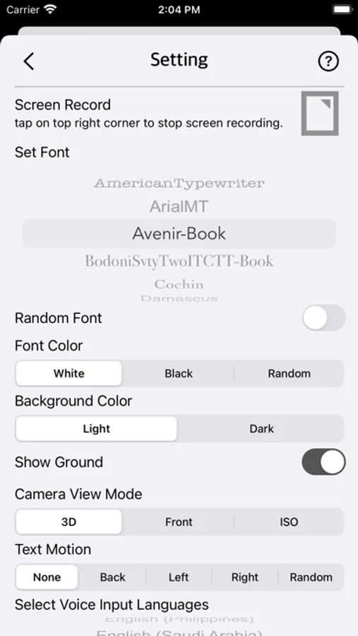 • Tap on the microphone icon and start talking, 3d text are auto appear on screen.
