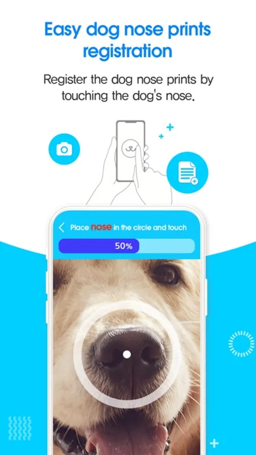 - "Dog nose prints registration service: You can easily register your dog's nose prints with the camera. Point the nose at the center of the camera and click on the nose to automatically recognize the dog nose prints and register the profile."