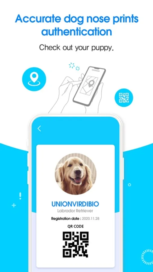 - QR code issuance service: If only the dog's nose prints is registered, the dog's unique QR code is issued to the UBio PetID app