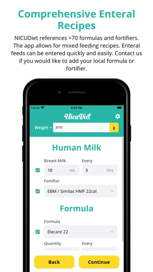 Our formulary includes over 70 formulas and supplements. But more importantly we are giving you the opportunity to submit more formulas and fortifiers to make NICUDiet work for you, your unit, and most importantly your patients. So do not hesitate to email us to add your formulas and fortifiers to NICUDiet. Turnaround time for this is 1-2 weeks.