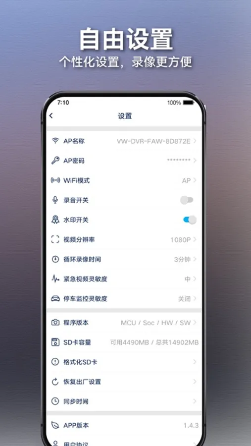 众智途APP是一款配合行车记录仪设备使用的一款手机控制软件,通过wifi连接行车记录仪设备后,可实现以下功能: