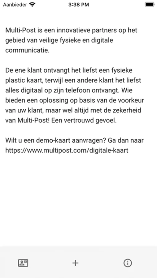 This is the virtual card application of Multi-Post, you can add our visitor or company card to your profile by scanning your personal invitation.