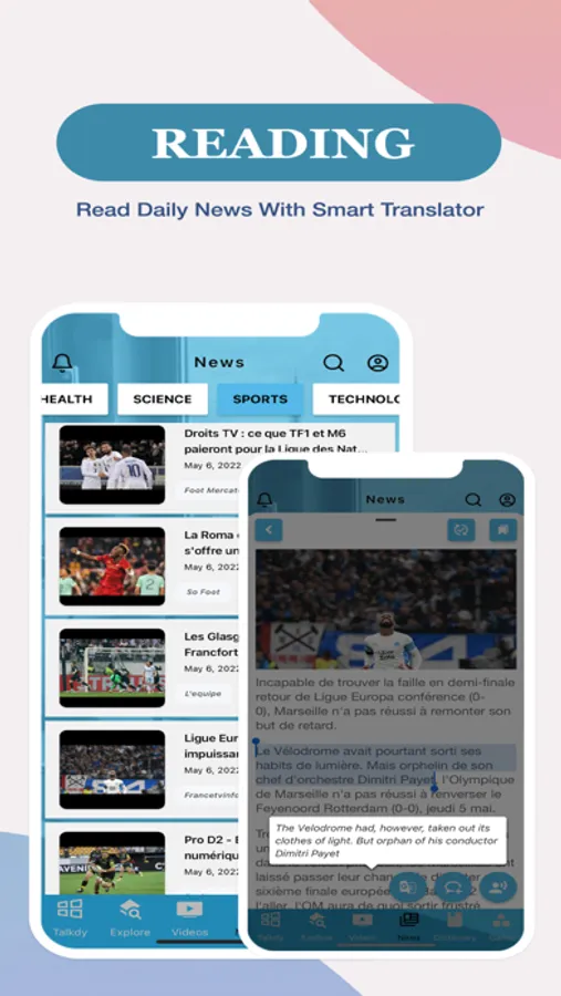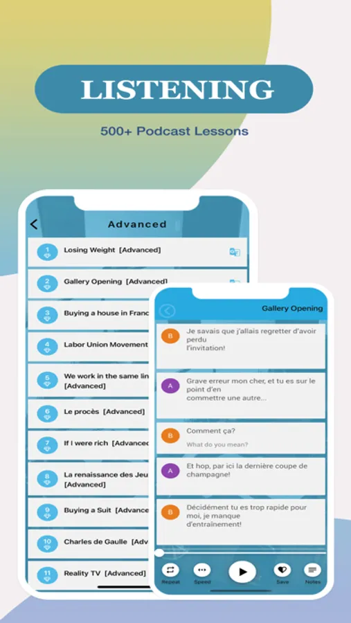• Smart translator, you can translate lesson from French to English, French to Chinese, French to Japanese, French to German, French to Korean, French to Portuguese, French to Spanish, etc.. because we support more than 70 languages.