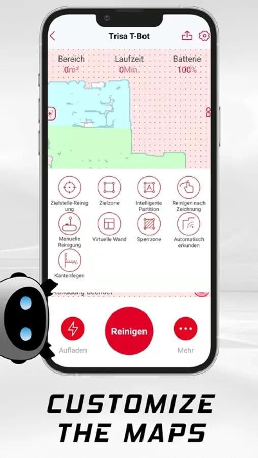 With the Trisa T-Bot App, you can control your new household helper from anywhere. No matter whether it's the suction power, the amount of water for the wiping function or the cleaning paths. The T-Bot follows you at every click.