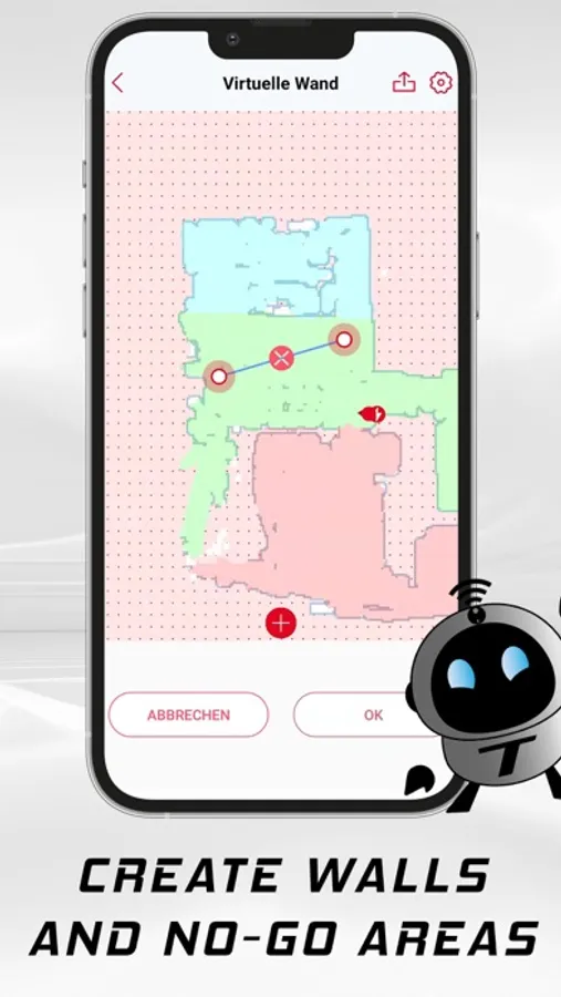 Multiple floors are no problem for the T-Bot. It creates up to six maps. Each can be assigned its own restricted zones, partitions, walls and other commands. You don't like the map you created? Just let it scan your rooms again. Share your maps with other residents.