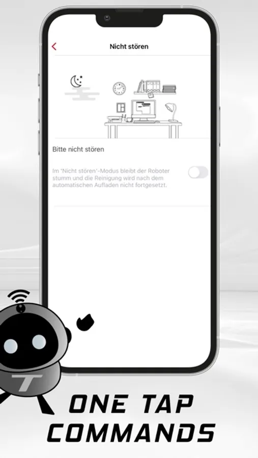Shhh. The T-Bot can also clean at night. With the extra-quiet suction function, you won't be woken up and when it receives the "Do not disturb" command, it stops yapping.