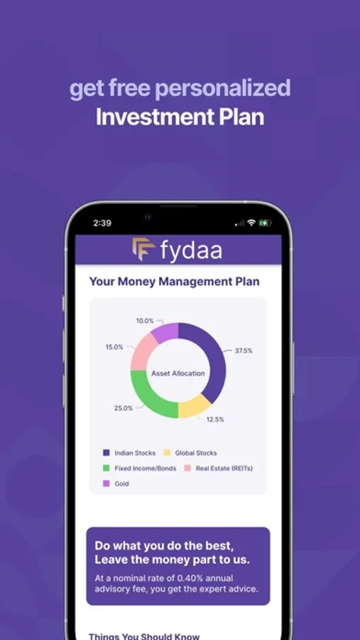 Fydaa is an automated platform that creates personalized money management and investment plans, using various low cost and efficient investment vehicles (mainly ETFs aka Exchange Traded Funds) that are usually unknown to smaller, inexperienced investors. The service is SEBI accredited, thus adhering to strict rules and guidelines that are designed to safeguard the users.