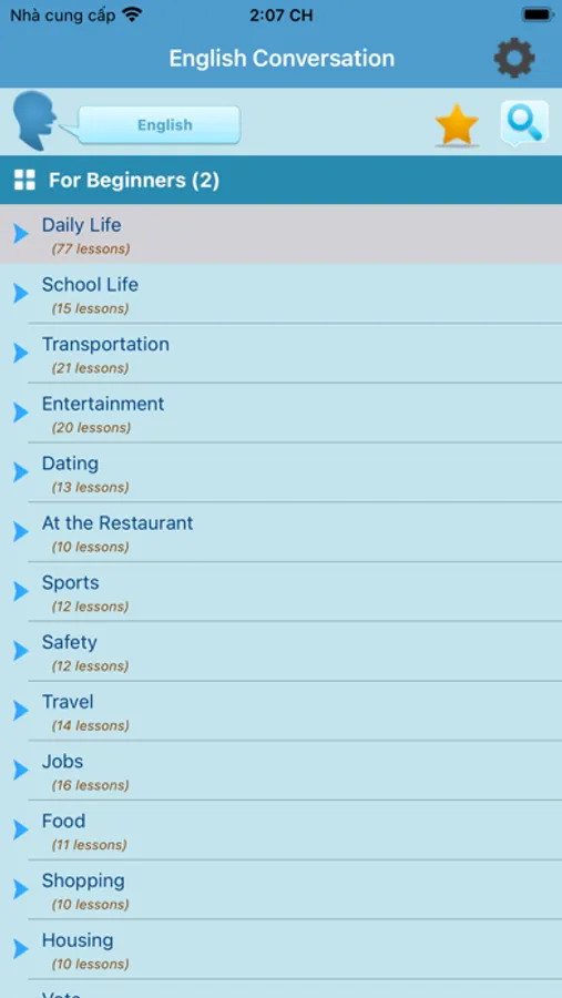 With over 2500 conversations in 85 diverse categories, you'll be exposed to a variety of real-life English conversations, from dating to banking and beyond. The conversations are organized by skill level, so you can easily find the right level for you, whether you're a beginner or intermediate learner.