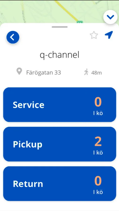 Klicka på en markör för att se mer information om butiken, öppettider, ställa dig i kö och se estimerad väntetid.