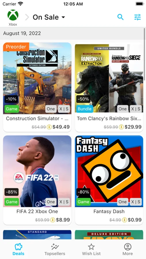 With the CheapCharts Games app, you'll find the best, latest, greatest deals on video games in the Microsoft (Xbox Series X|S, Xbox One), Playstation (PS4, PS5), Nintendo (Switch) and Steam stores. Your current desired game is still too expensive? No problem, put it on your personal CheapCharts wishlist at your desired price and we'll inform you the moment the price drops. Through CheapCharts, you always buy your titles cheap, which means you can play more and even save money in the end, wohoo :).
