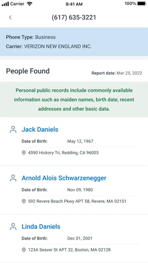 - Get every piece of information about the spammer, including full name, addresses, and phone details, in a few seconds.