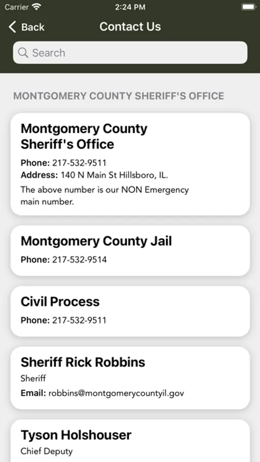 The Montgomery County Illinois Sheriff’s Office mobile application is an interactive app developed to help improve communication with area residents. The Montgomery County Sheriff App allows residents to connect with the Montgomery County Sheriff’s Office by reporting crimes, submitting tips, and other interactive features, as well as providing the community the latest public safety news and information.