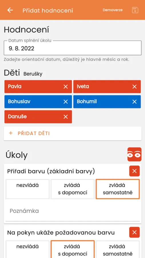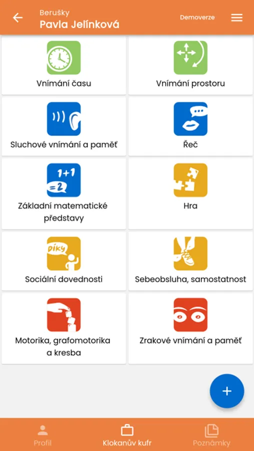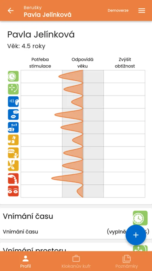 Aplikace je využitelná k zaznamenávání a vyhodnocování vývojových škál Klokanova kufru i Diagnostiky dítěte předškolního věku.