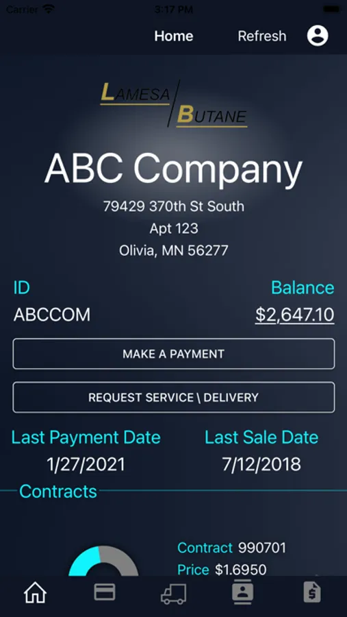 Information at your fingertips! This app gives you direct access to your account balance, location and contract information. It also gives you the ability to store and process payment and request service work and deliveries directly through the app.