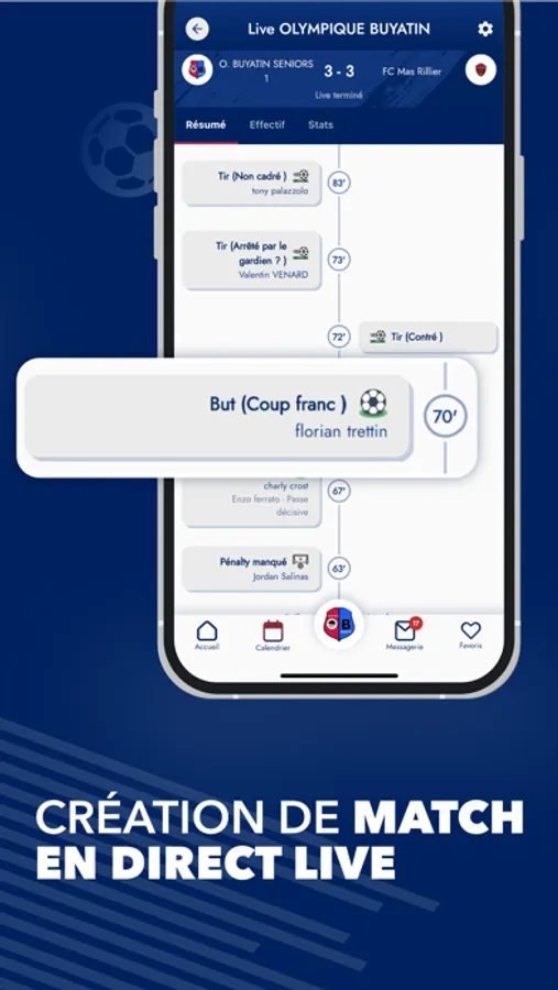Passez à la vitesse supérieure et diffusez vos matchs en direct, comme les pros ! Grâce à SportCorico, vous pouvez saisir en direct les différentes actions du match : buts, passes décisives, tirs, corners, fautes, cartons & même les changements.