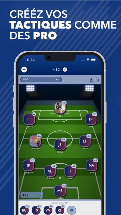 Grâce au module de compositions d'équipes, préparez en avance votre compo. Plus de 20 dispositifs sont disponibles pour affiner vos tactiques.