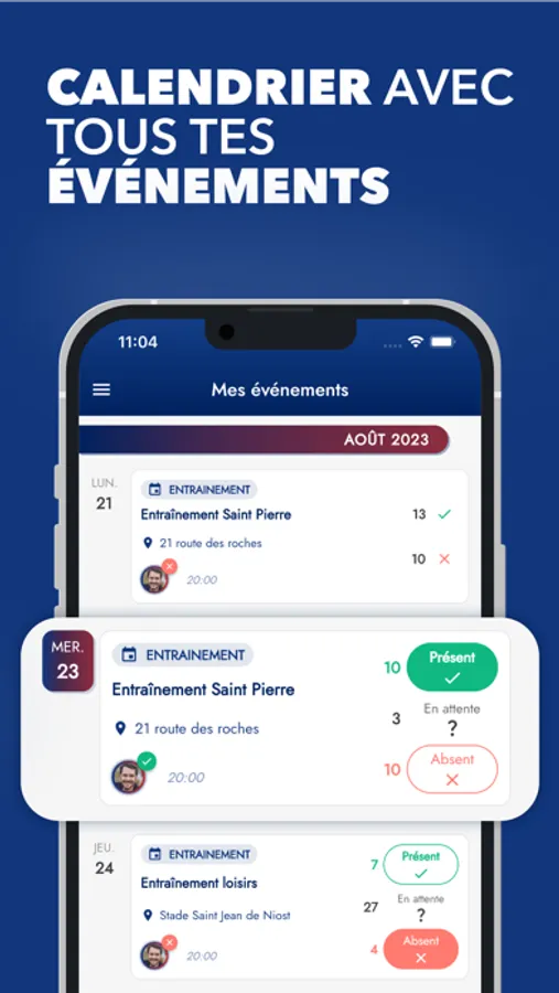 - Gagnez du temps grâce au bilan des présences, vous savez d'avance qui est présent et pouvez mieux organiser vos matchs, séances d'entraînements ...