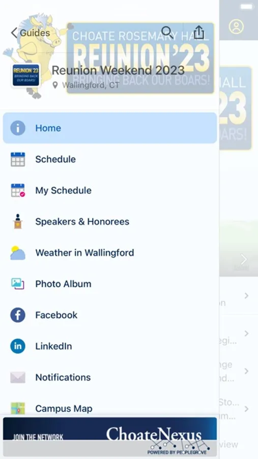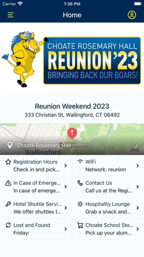 If you are attending Reunion, Orientation, or Parents Weekend, then download the Choate Event Guide to build your personal schedule, access session details such as speakers and locations, find campus maps and visitor information, connect and engage with other attendees, and more. Make the most of your Choate Rosemary Hall event! Go Choate!