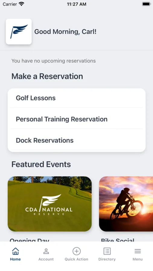 Download the CDA National Reserve app to easily view your membership statement, calendar of events, and member directory. You can also quickly make reservations for: