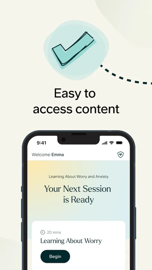 Immediate support for managing worry, stress, and anxiety, whether waiting for therapy or not. To get started, all you’ll need is the provided access code.