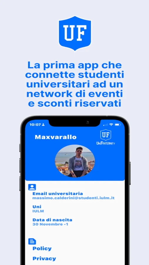 Tramite la nostra applicazione se sei uno studente universitario avrai la possibilità di scoprire eventi organizzati solo per te, pagando direttamente in app e scannerizzando il QR code all'entrata!