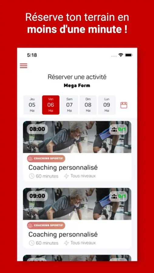 Fini la corvée de réservation ! Avec l'application tu n'as plus qu'à accéder aux créneaux disponibles et à en choisir un. Le club recevra alors automatiquement ta réservation.