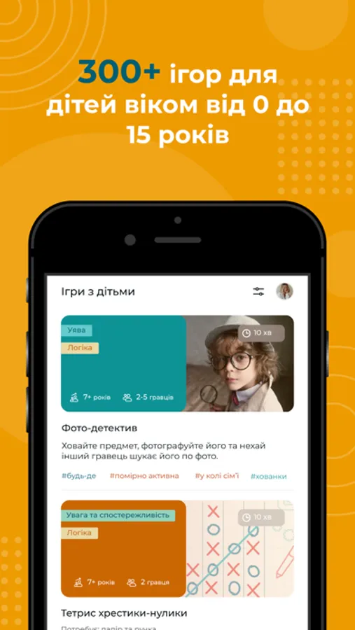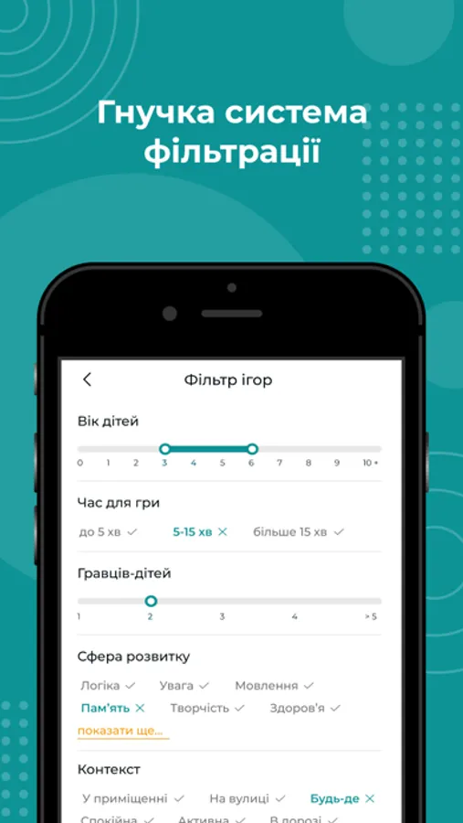 Вичерпний каталог 300+ дитячих ігор для будь якого місця (приміщення, вулиці, транспорту), напрямку розвитку та віку із гнучким фільтром.