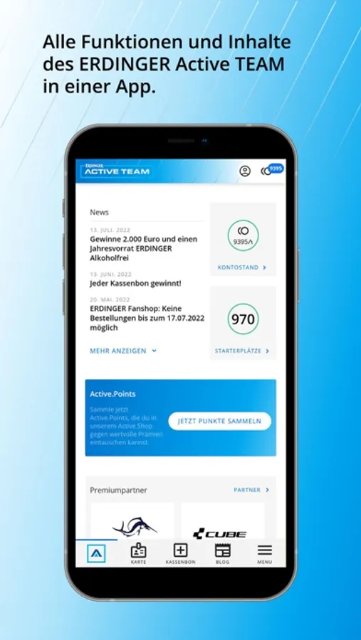 Alle Funktionen und Inhalte des ERDINGER Active TEAM in einer App.