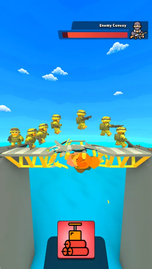 The best bridge explosion game: Explosion planner. Don't you want to burst the bridges and not let the soldiers pass?