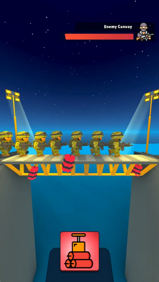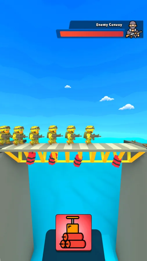 Make the best use of the limited number of bombs you have. Place them at the foot of the bridges and explode them just as the soldier pass, remember that not a single soldier should pass. Make it even more fun with different bridge structures and bombs. And experience the feeling of satisfaction at the top.