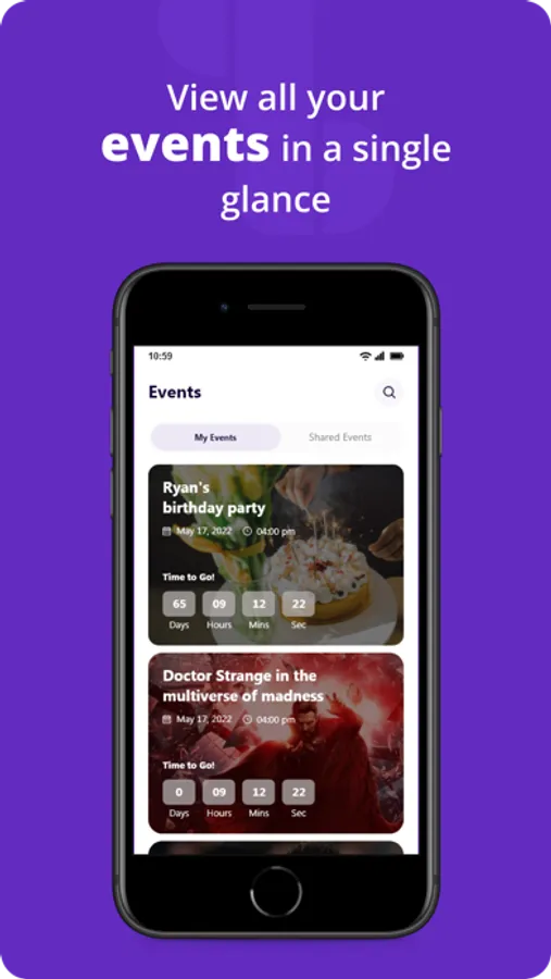 Create a countdown to your wedding day or a birthday party. You can share this excitement with others. You can also add events created by your friends by adding them to your timeline.