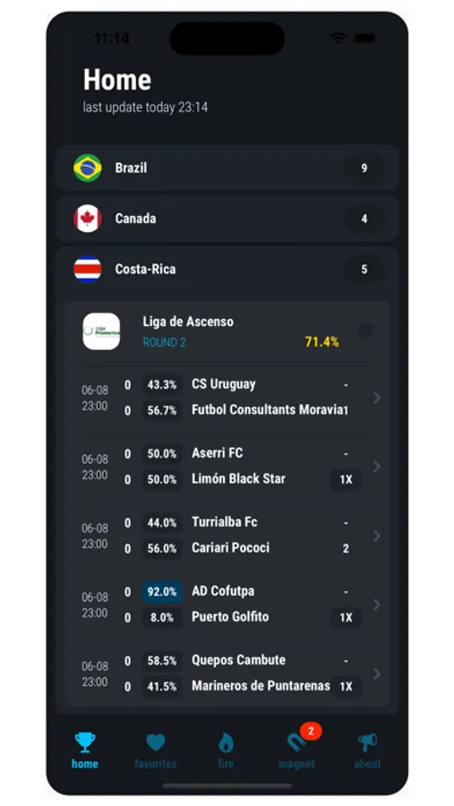 PreBet is a platform for all football fans, we offer informations about all of the football leagues worldwide. Our goal is simplify the choice! and not only statistics for analysis a self calculation. So enjoy easy!