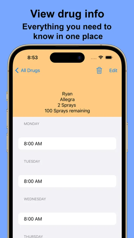Never forget to take your medication or prescriptions ever again. With Rx Alert, simply enter information about your medication and choose a time to get reminded. You can add multiple reminder times with a custom schedule for each day. Rx Alert supports multiple users and iCloud sync. Track medication for multiple people and sync changes across devices with ease.
