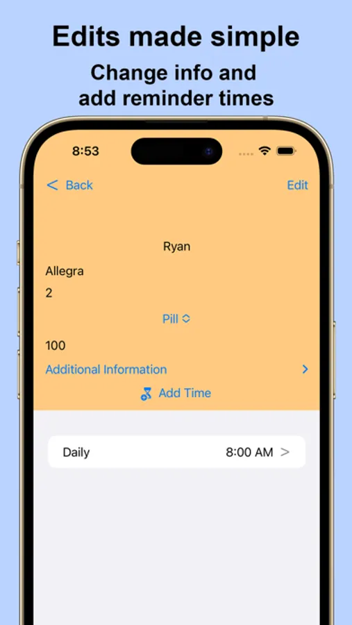 Rx Alert allows you to include a wealth of information, including dosage, custom dose types, as well as pill shape, size, and color.