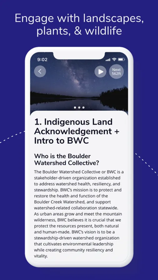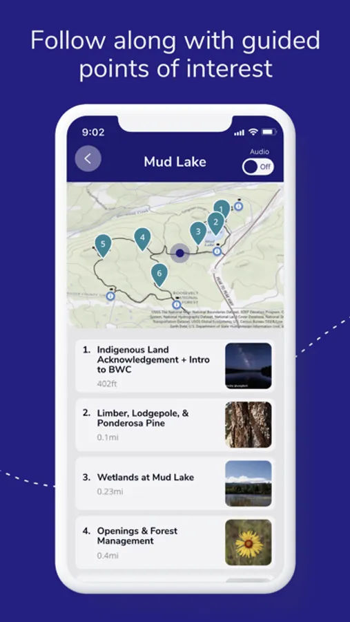Much like an audio guided museum experience, this app will lead you to designated stopping points along a variety of different hiking/walking trails taken at your own pace while you learn, explore, and interact with the surrounding environment. Use the geo-referenced map built into each hike to see exactly where you are and where the next learning stop will be. Listen (or read) as you hike at your own pace to each stop through this personalized and immersive education experience in the great outdoors!