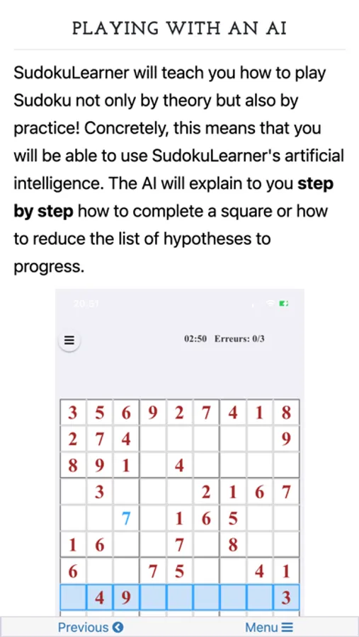 Discover all the pleasure of playing Sudoku without ads while being accompanied by an artificial intelligence.