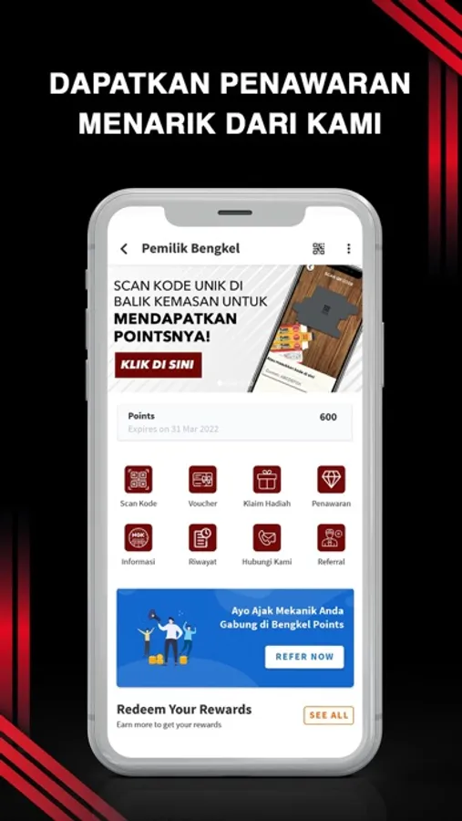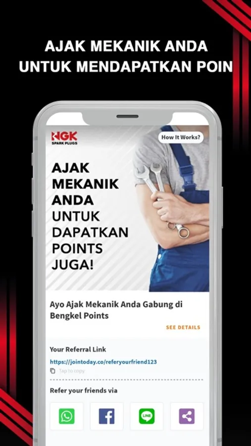 - Point setiap kali melakukan Scan Kode pada kemasan produk NGK Busi