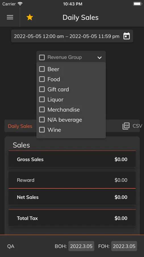 Access hourly, daily, weekly, or monthly sales activity. Check sales by server or time.