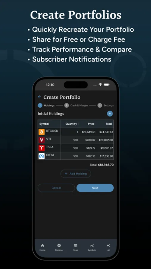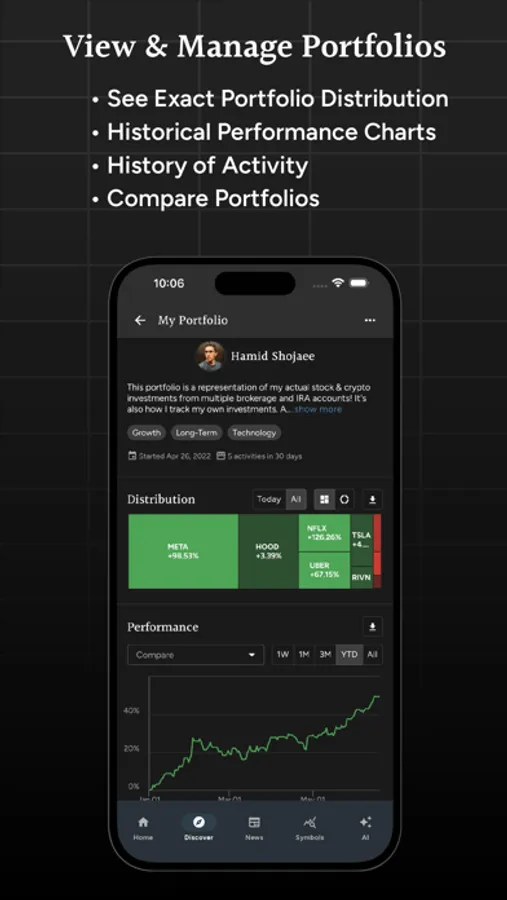 Discover and subscribe to other user portfolios based on portfolio performance, popularity or investment style. When you subscribe to a portfolio, you will be notified of every trade via SMS, email, or push notifications, allowing you to stay aware of your favorite investor's trades and comments.