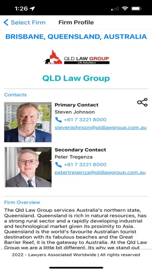 LAW (Lawyers Associated Worldwide) is a global network of independent law firms working together to best serve their clients. This app allows lawyers around the world to list their firm details for public view, both for potential clients and the law community. Members of LAW can also view and update their firm details as well as their own individual profile, to keep their information up to date, on the go.
