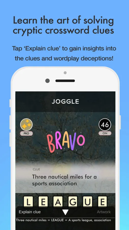 Joggle is a word puzzle game unlike any other. Crossword-style clues with a novel twist. Quick or Cryptic? Your choice. Quick puzzles are a great way for newbies to learn the art of crosswords. Cryptic puzzles will challenge and delight even seasoned solvers.