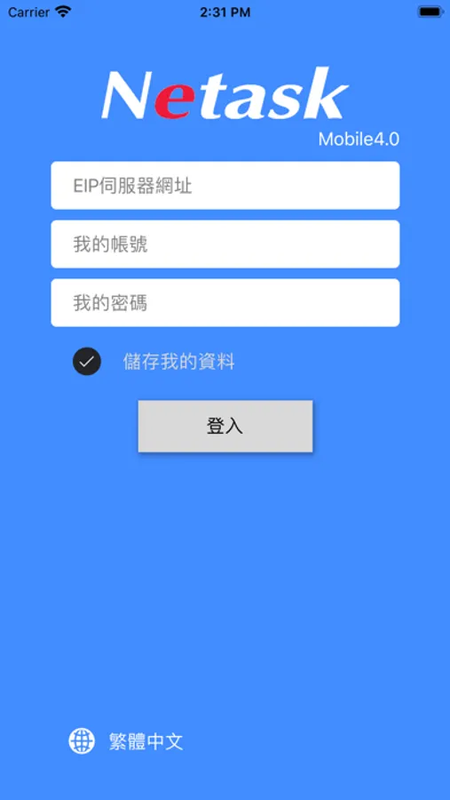 若貴公司尚未申請 APP 序號,則無法成功登入 APP。您也可以透過手機瀏覽器登入貴公司的 Netask 網址,輸入您的帳號、密碼進行操作。