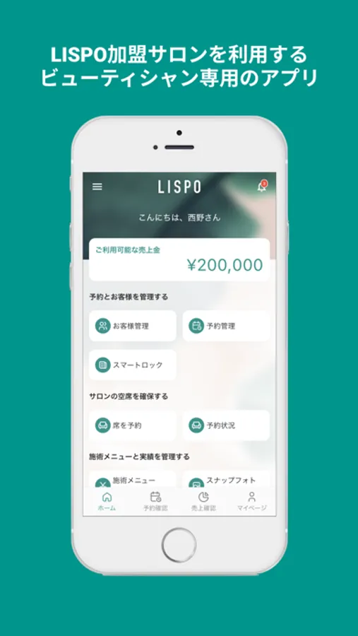 LISPO加盟サロンを利用するビューティシャン専用のアプリです。
