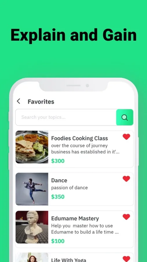 Stop chasing likes and followers. Cash in on your expertise with Edumame. Build up your experience levels and keep up good ratings from your customers in professionalism, capability, charisma and value. Your good reputation will be your strongest asset to promote yourself.